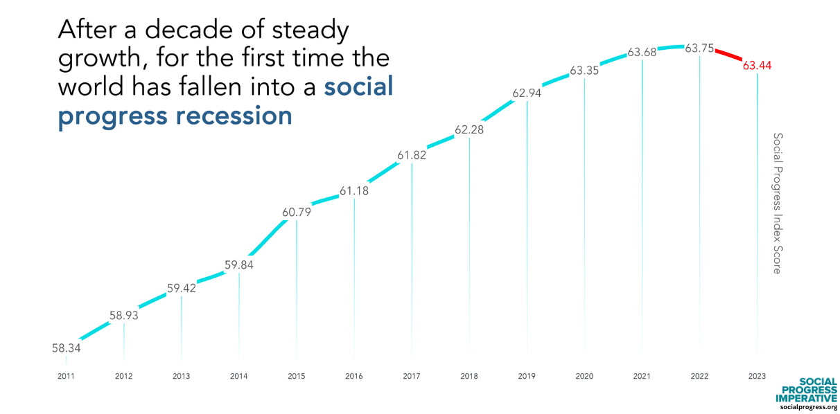 Let me tell you straight away, the world is facing a social progress regression. Yes, countries social progress declined. According to the 2024 Social Progress Index research, 61 out of 170 countries saw a significant decline in their social progress in 2023, and 77 more stagnated. Only 32 countries, out of 170, saw any real progress.